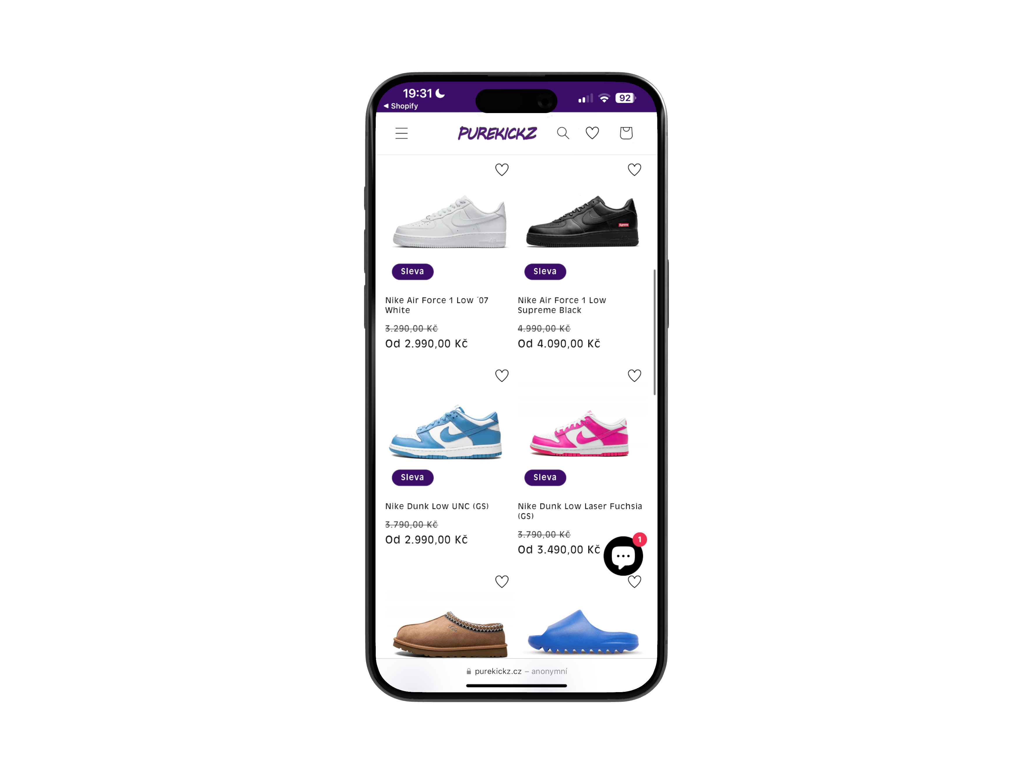 Tenisky lze filtrovat a vyhledávat podle kategorii či názvu. U každé tenisky v pravém horním rohu naleznete srdíčko, kterým si můžete všechny produkty přidávat do oblíbených. Všechny své oblíbené produkty naleznete po kliknutí na srdíčko vpravo nahoře vedle vašeho profilu