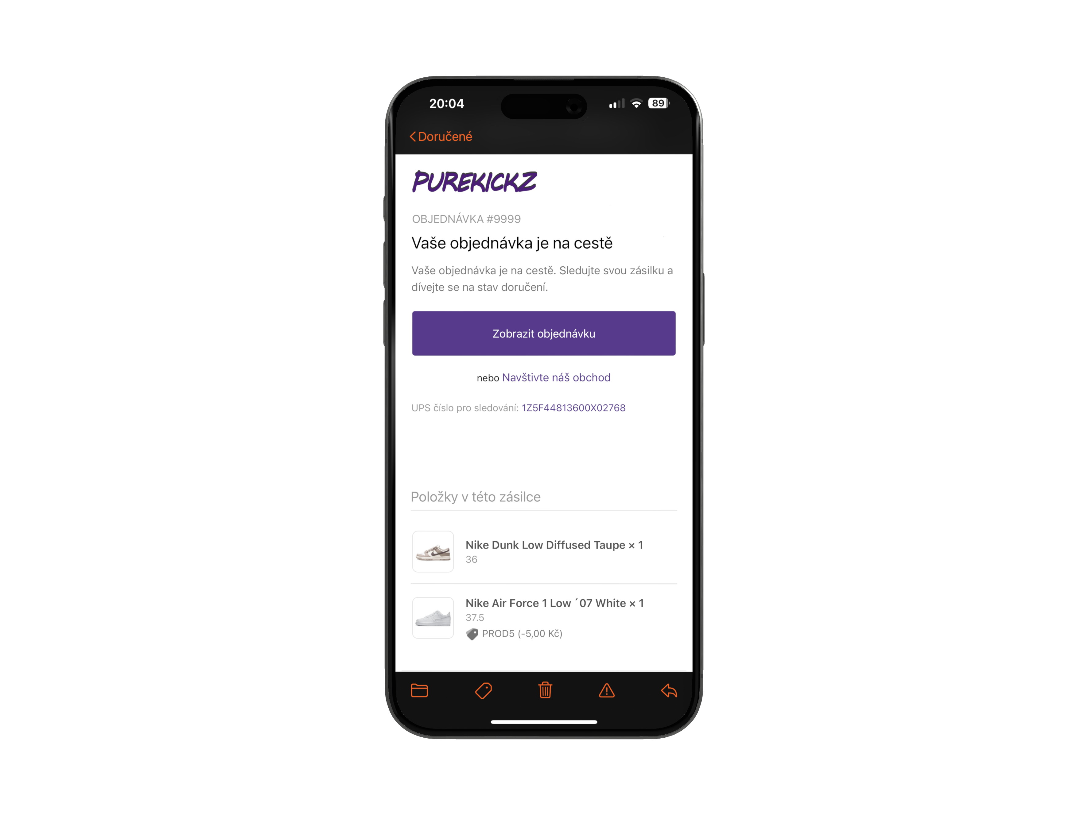 Jakmile vaše objenávka bude zabalena a odeslána pošleme vám na vaší E-mailovou adresu potvrzení se sledováním objednávky. Obvykle bývají objednávky doručeny do 1 pracovního dne od odeslání.